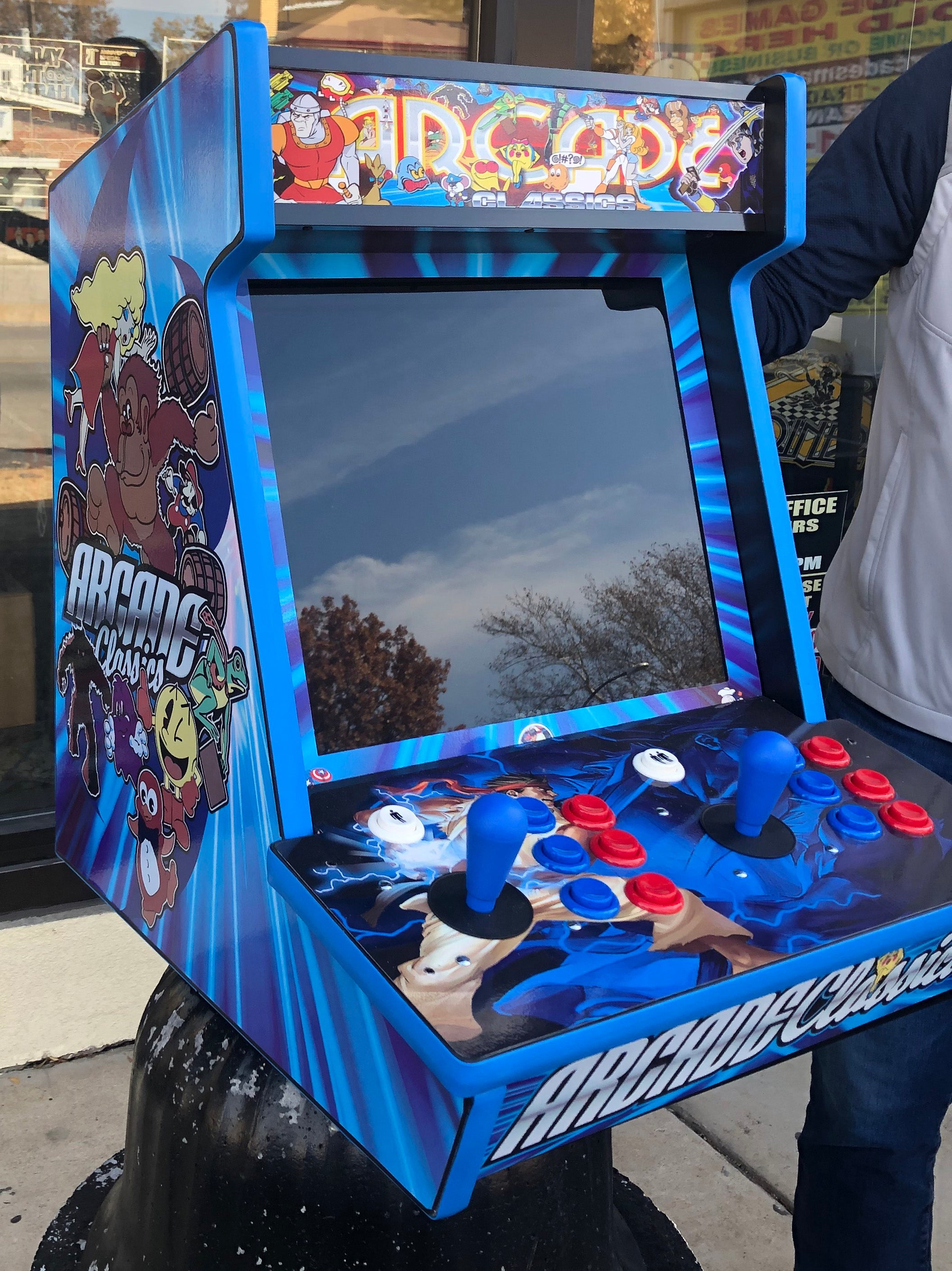 Ā This game plays over 1300 classic arcade games.Ā and free shipping. We can also do custom art work decals of your choice.