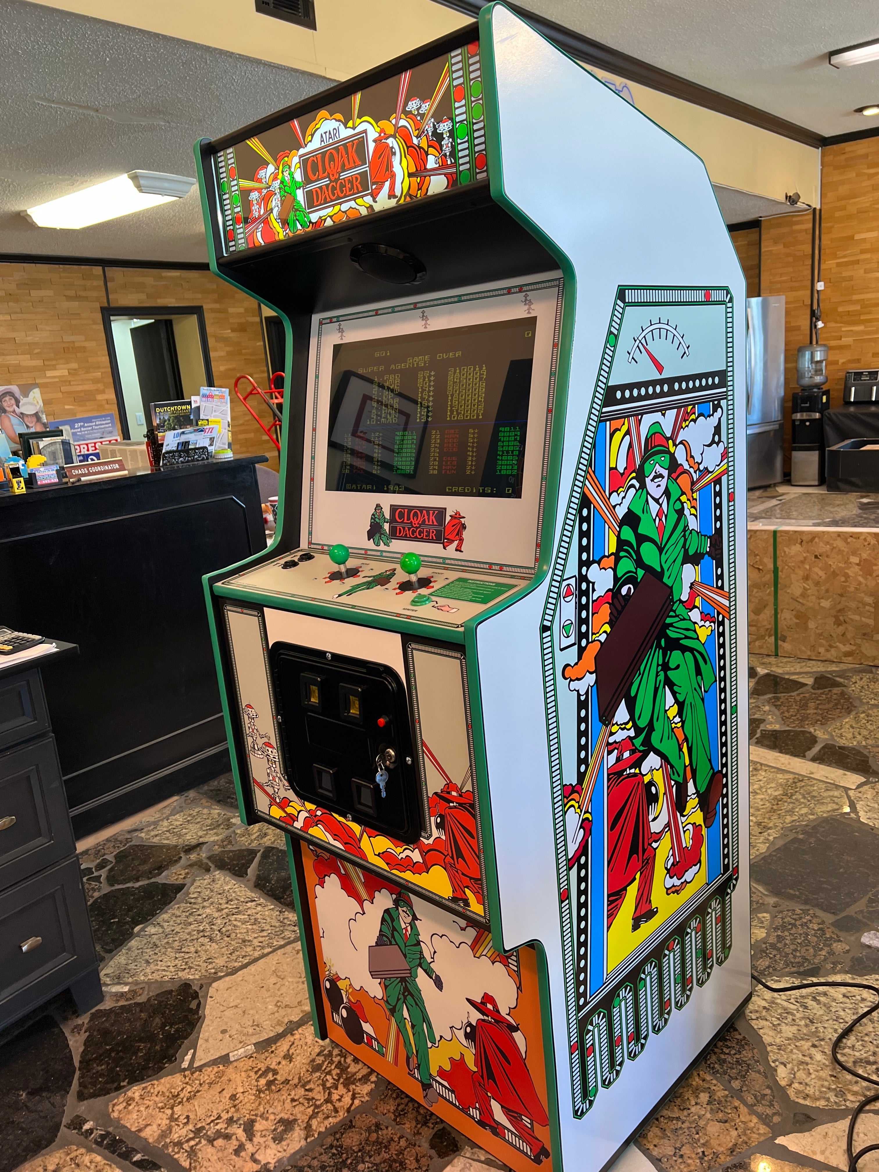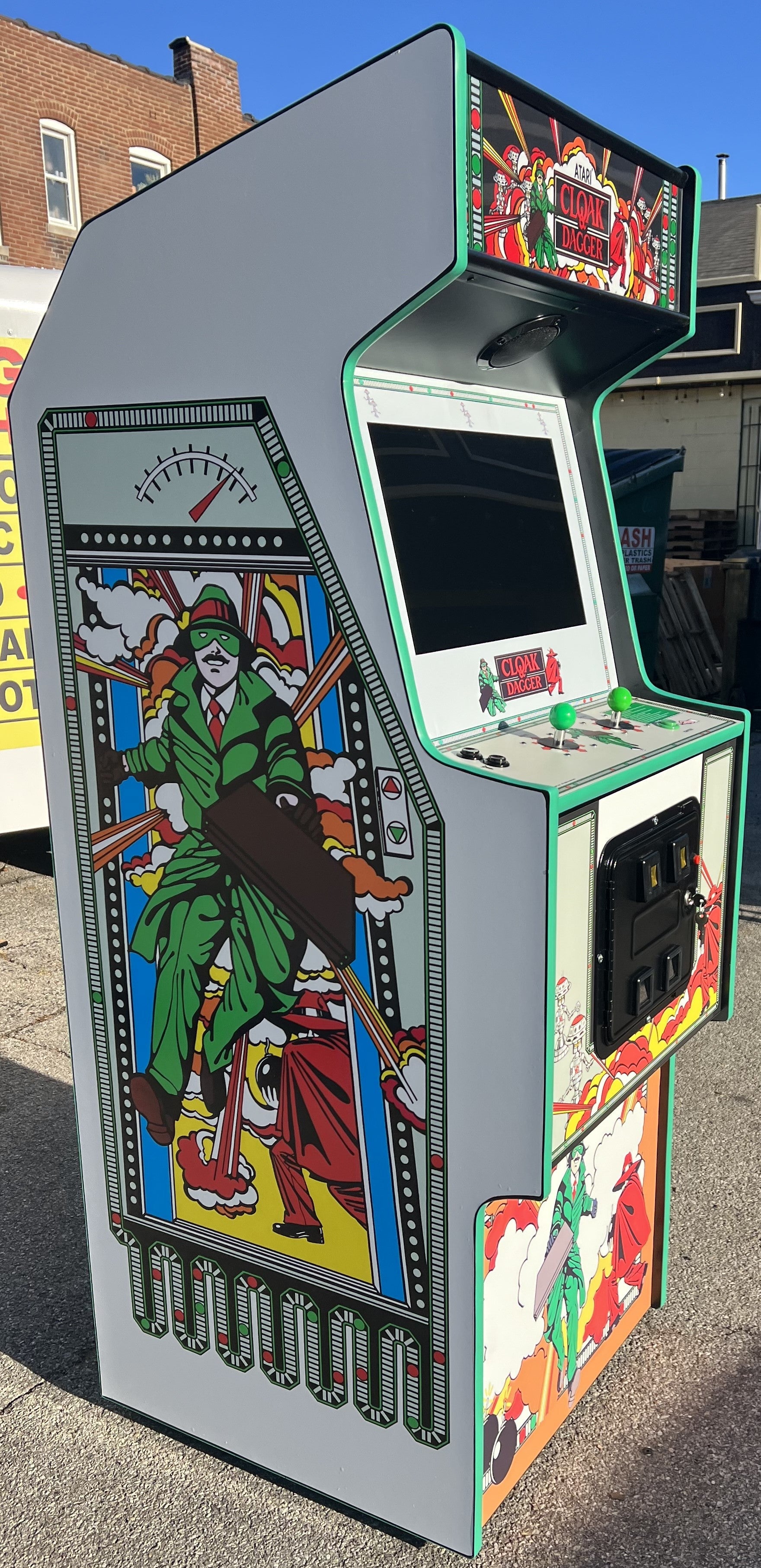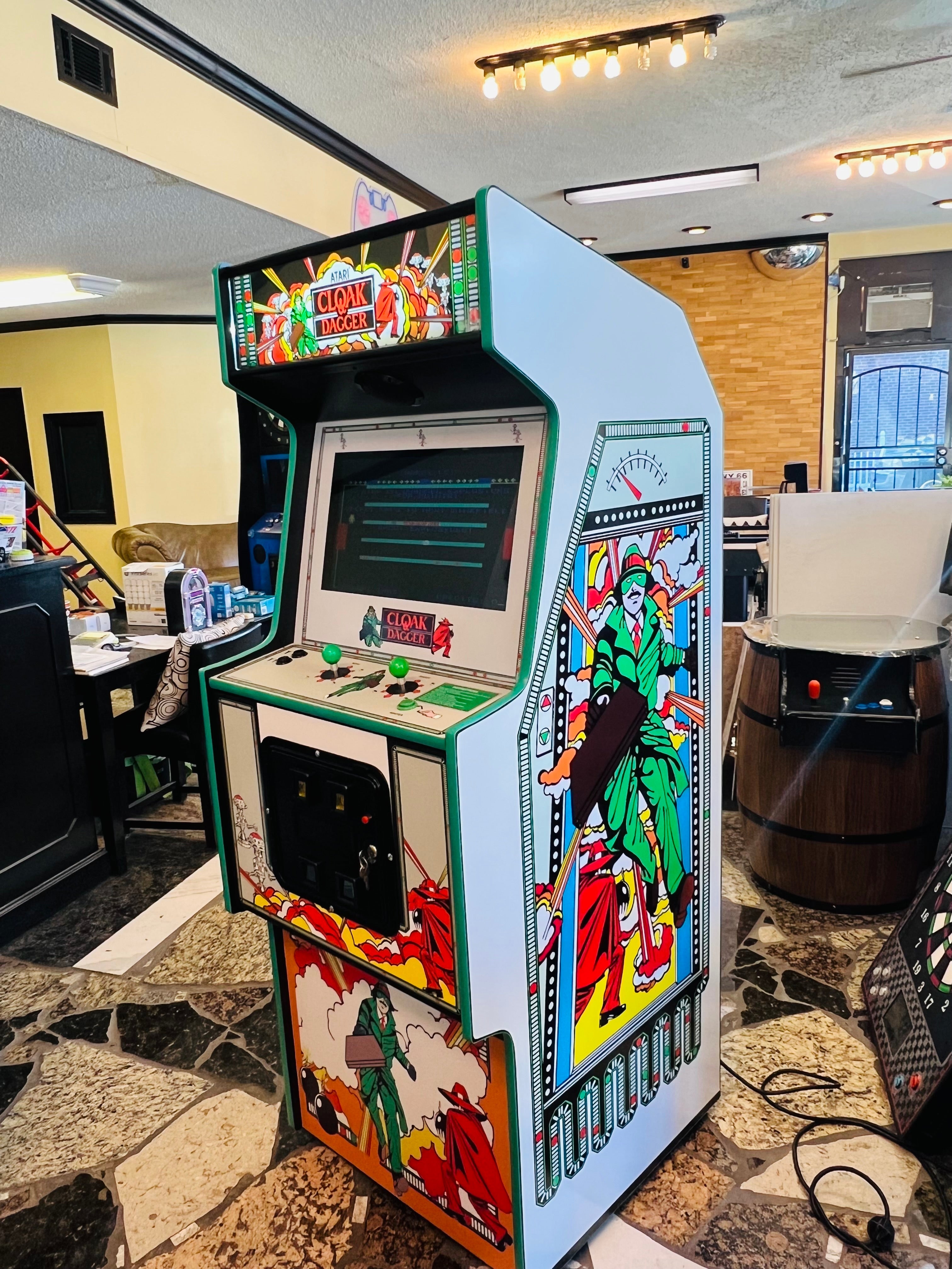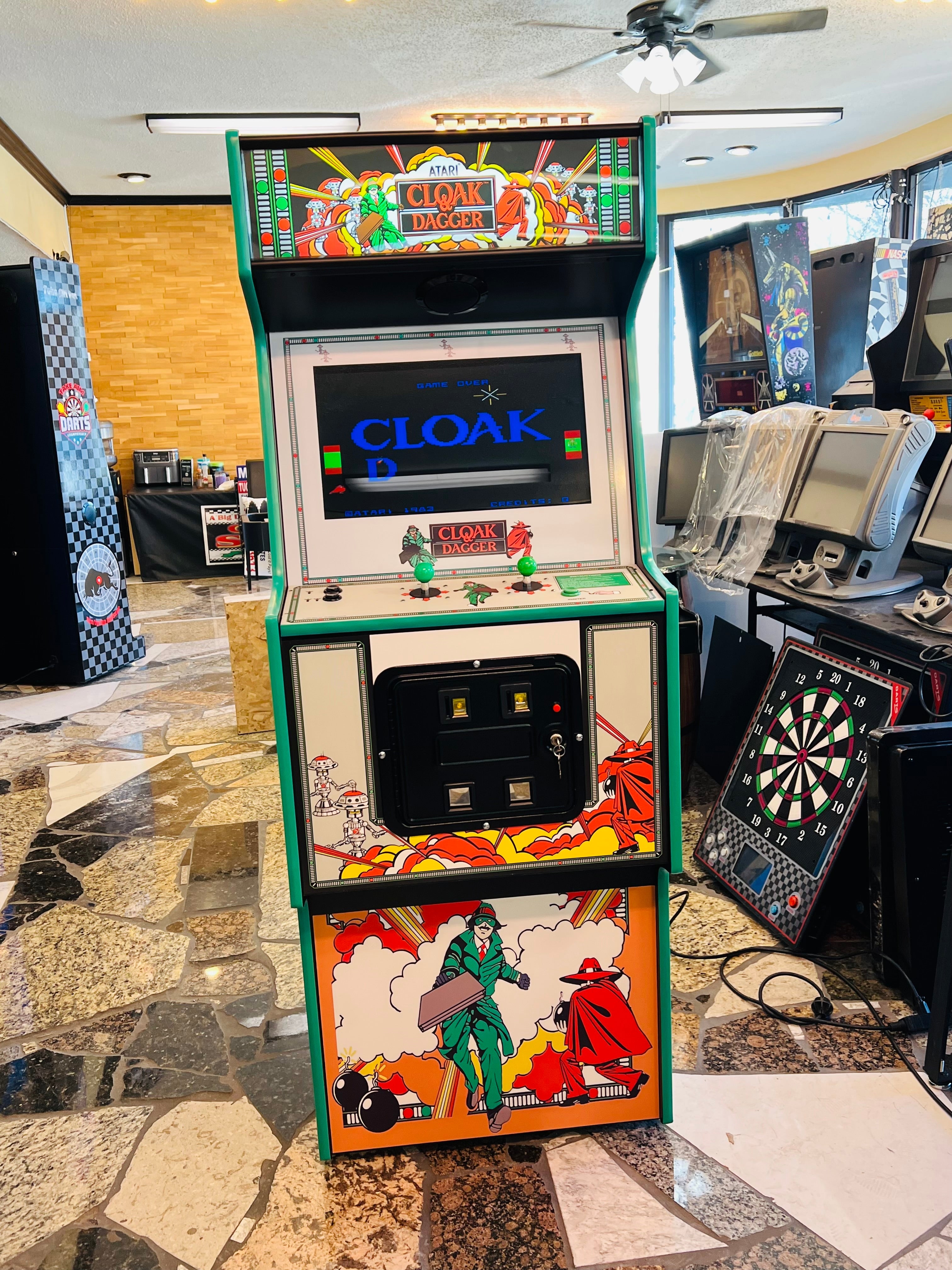 Cloak & Dagger is an arcade video game released by Atari, Inc. in March 1984 as a tie-in to the 1984 film Cloak & Dagger. The game saw limited arcade release as a conversion kit for Robotron: 2084 cabinets. The game was created by Russel Dawe. The game was under development using the title Agent X when the movie producers and Atari learned of each other’s projects and decided to cooperate. When Atari was consulted to provide a game as an element of the movie, they tweaked Agent X and renamed it Cloak & Dagger. Dabney Coleman’s character was named “Jack Flack” in the movie in lieu of “Agent X”. The film shows an Atari 5200 version of the game, but the cartridge props are actually other 5200 games with a Cloak & Dagger label stuck on them and the screenshots are of the arcade version.Ā