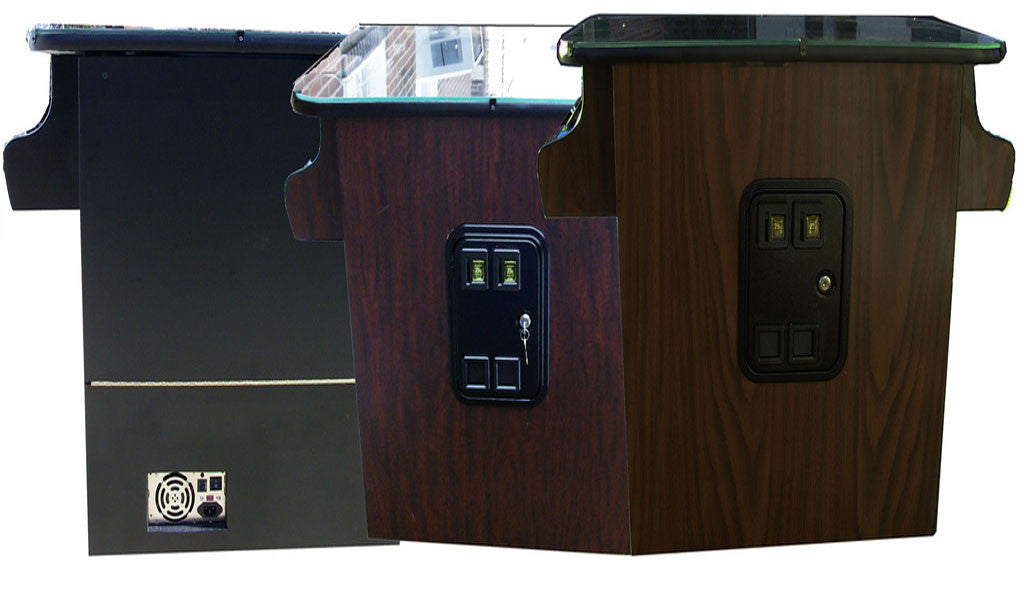You can choose any of the following Cocktail Multi Arcade in Black, Cherry wood grain , Walnut wood grain or white with free delivery to your door for only $1480.00 with one year parts warranty. They play 60 classic games form 80’s.