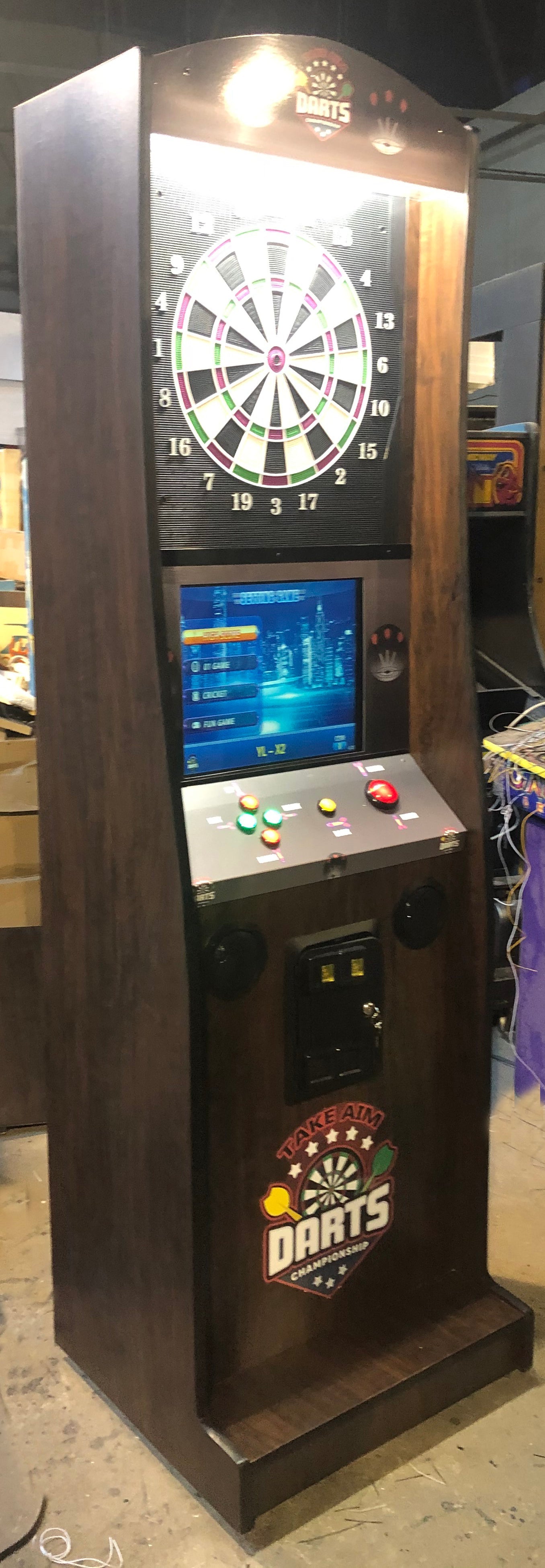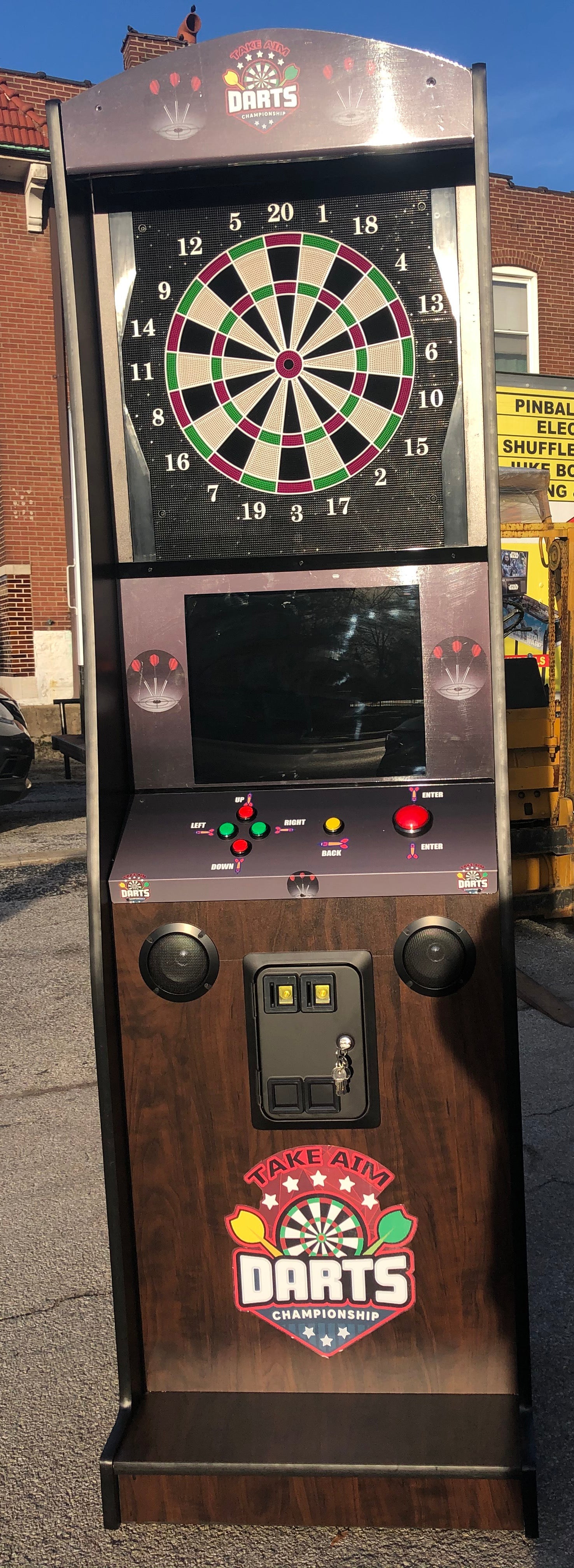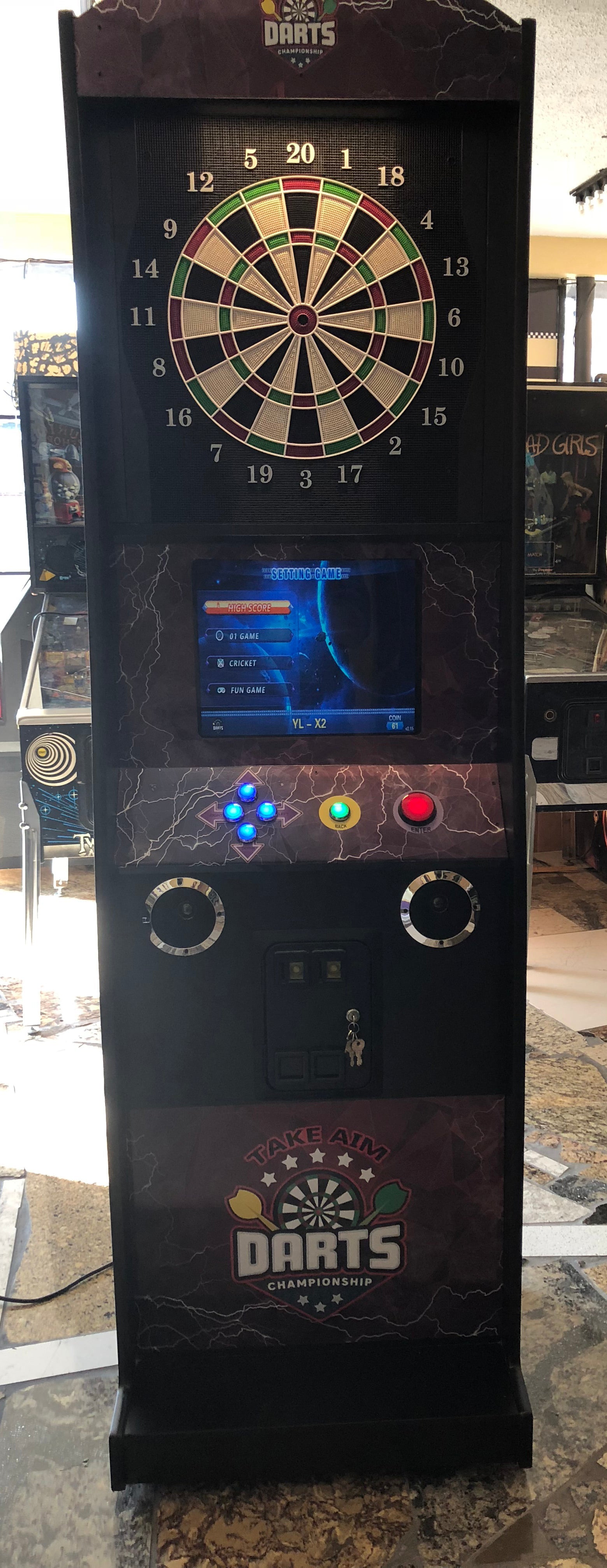 This Dart Machine is also available in walnut wood grain, cherry wood grain, white or black cabinet. We can also customize your cabinet with your own logo ( for extra charge ) such as your Lounge name, Restaurant name, your Personal name or any other logo of your favorite. This game is coin operated however you can set it on free play as well.