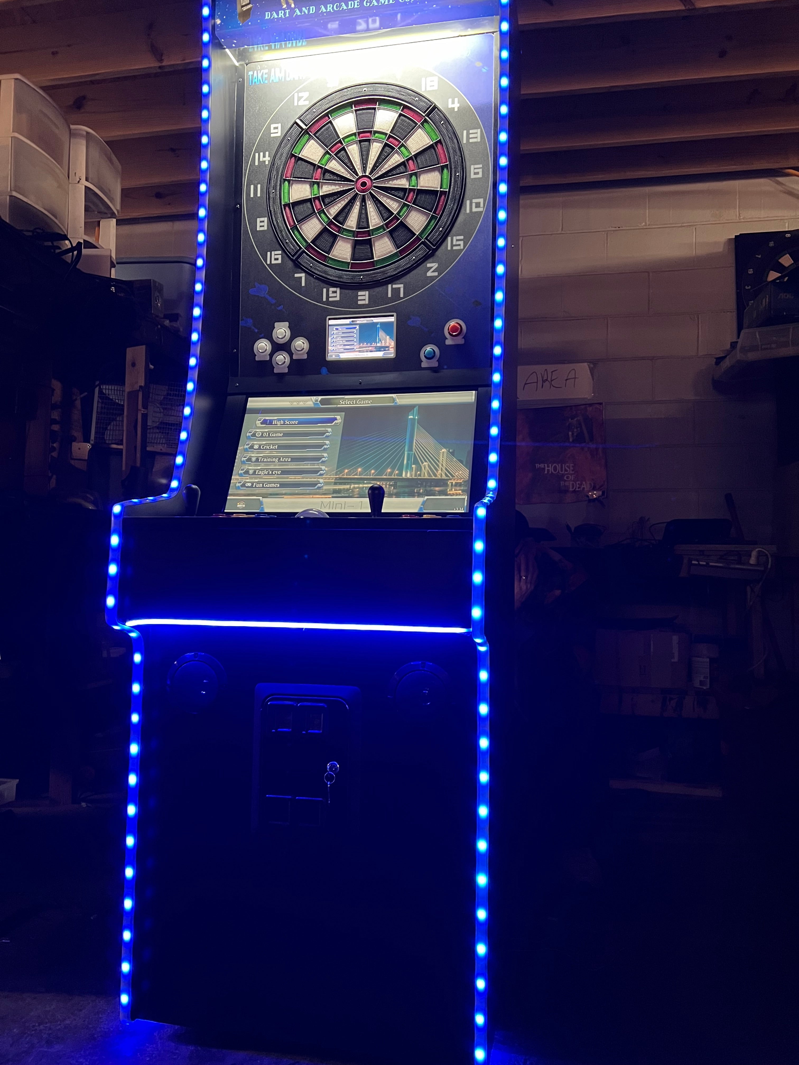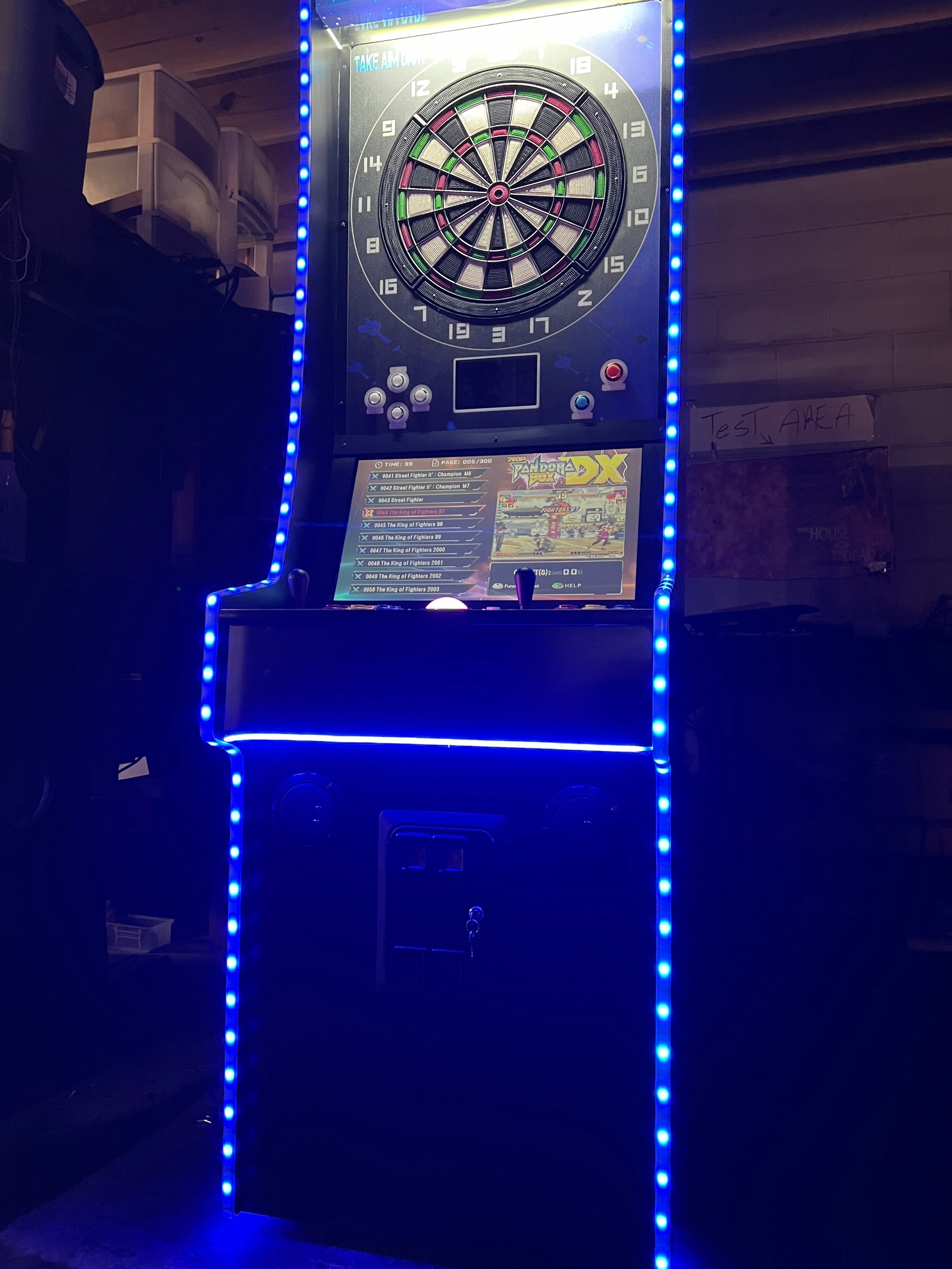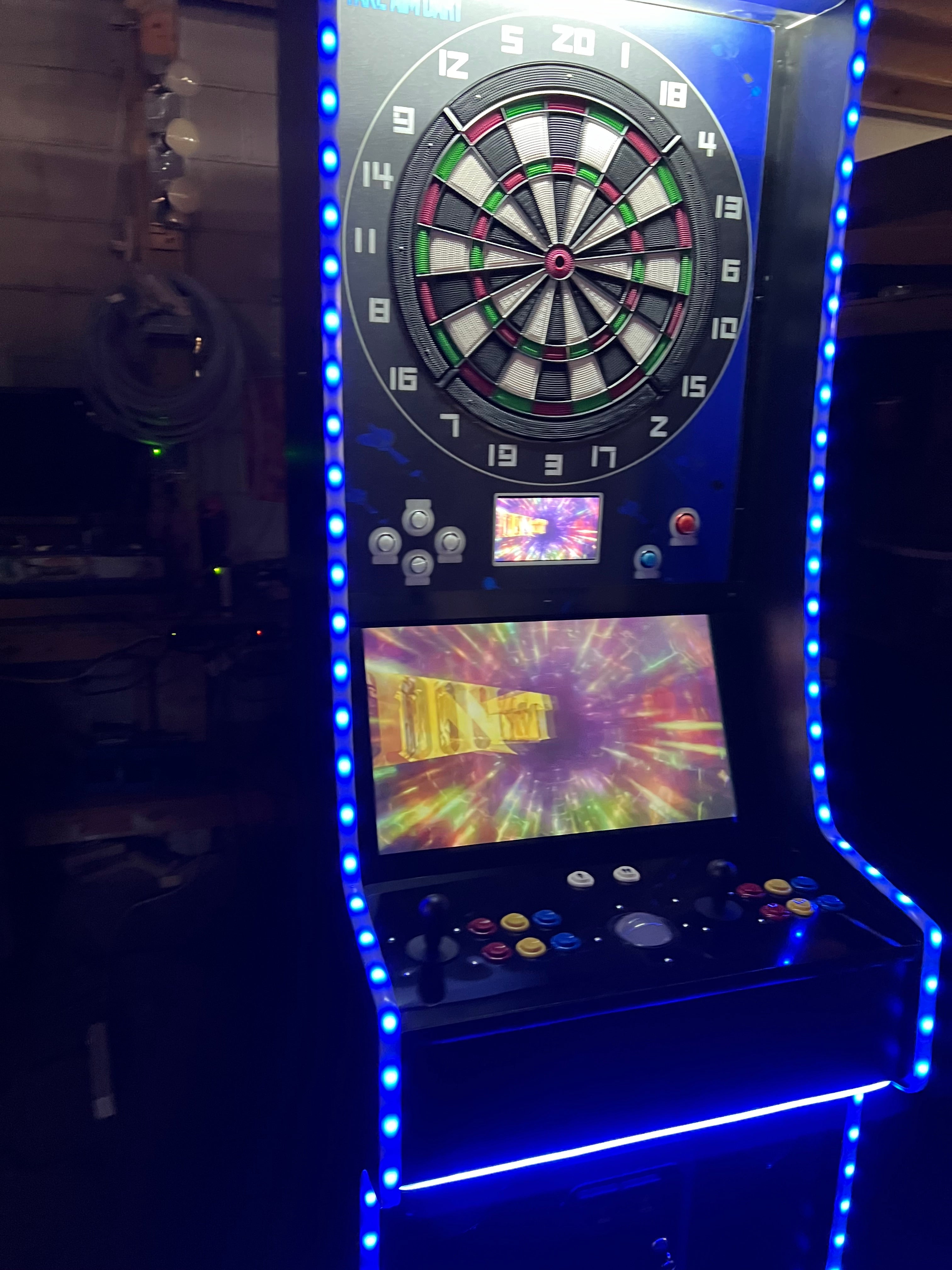 Introducing the most sophisticatedĀ multigame which with pressing a button it will change to a dart machine and allow you to play dart gameĀ  it simply turns the multi arcade off and changes to a real dart board just like the dart machines you play in lounges, restaurants and etc … This game is very unique machine.