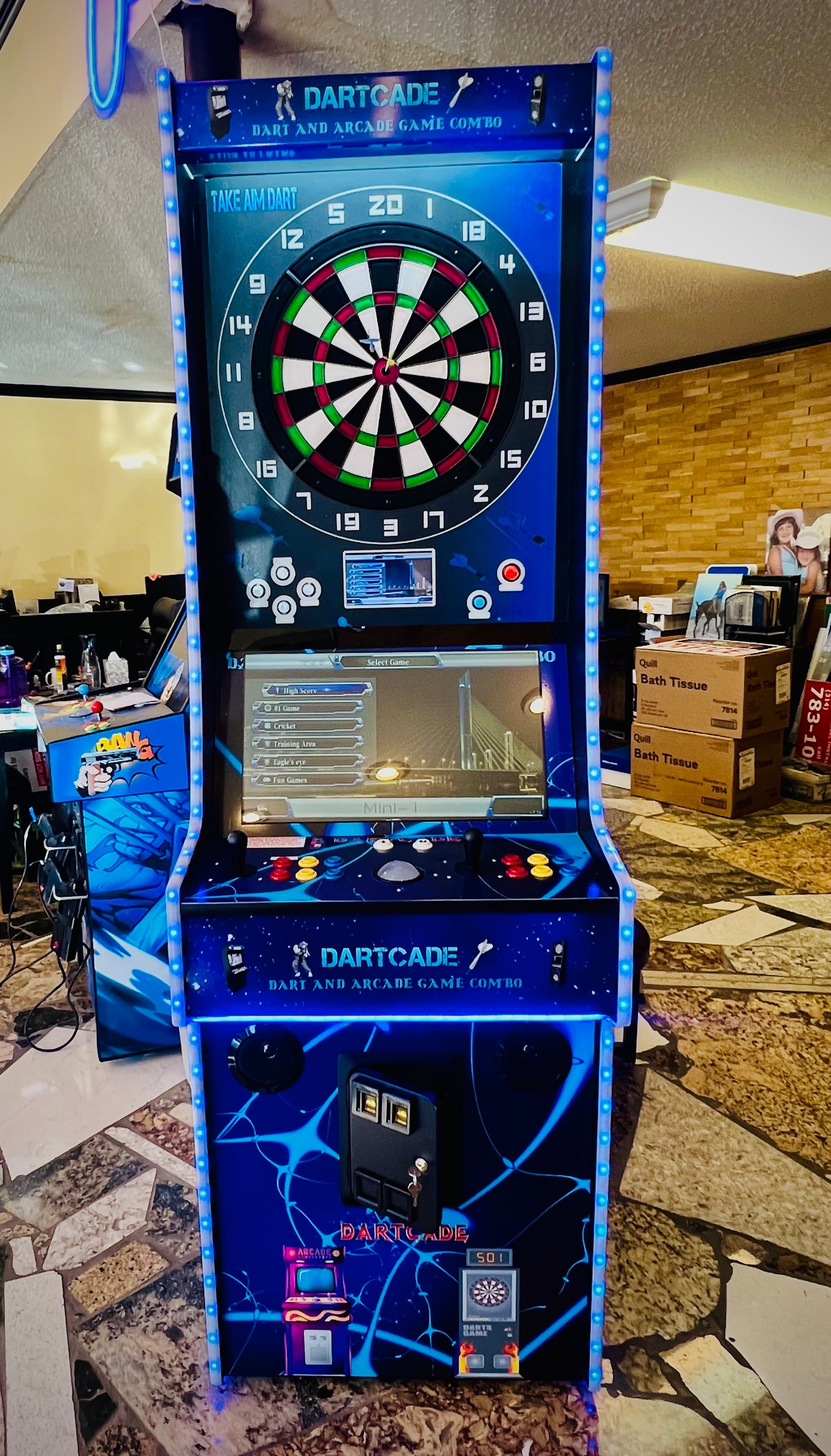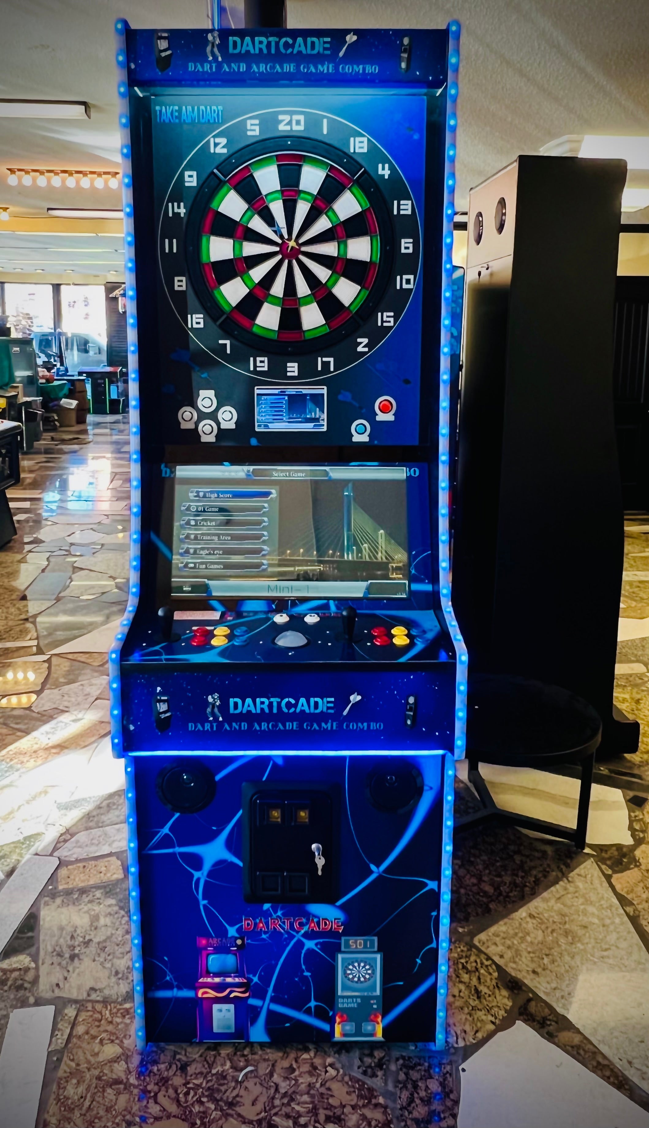 Introducing the mostĀ sophisticatedĀ multigame which with pressing a button it will change to a dart machine and allow you to play dart gameĀ  it simply turns the multi arcade off and changes to a real dart board just like the dart machines you play in lounges, restaurants and etc … This game is very unique machine.