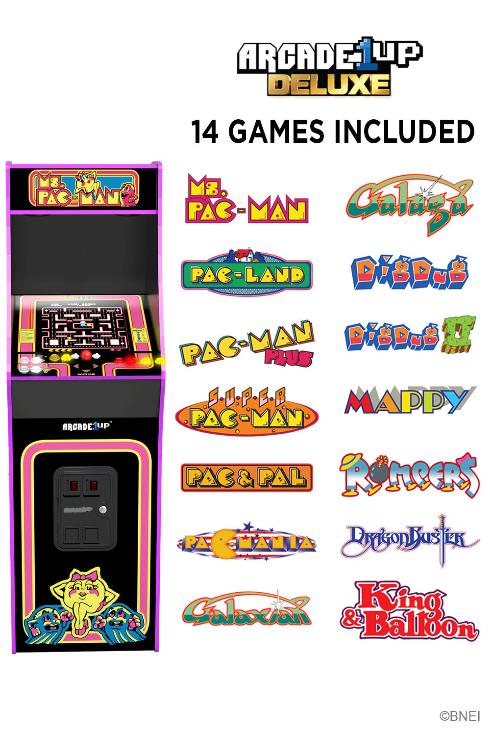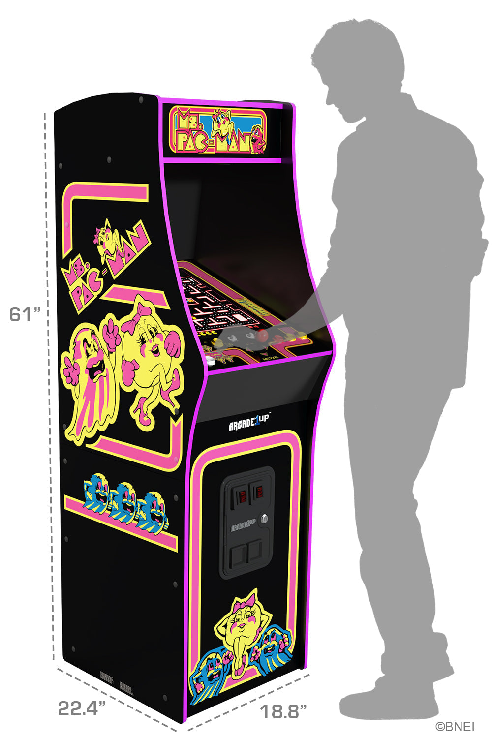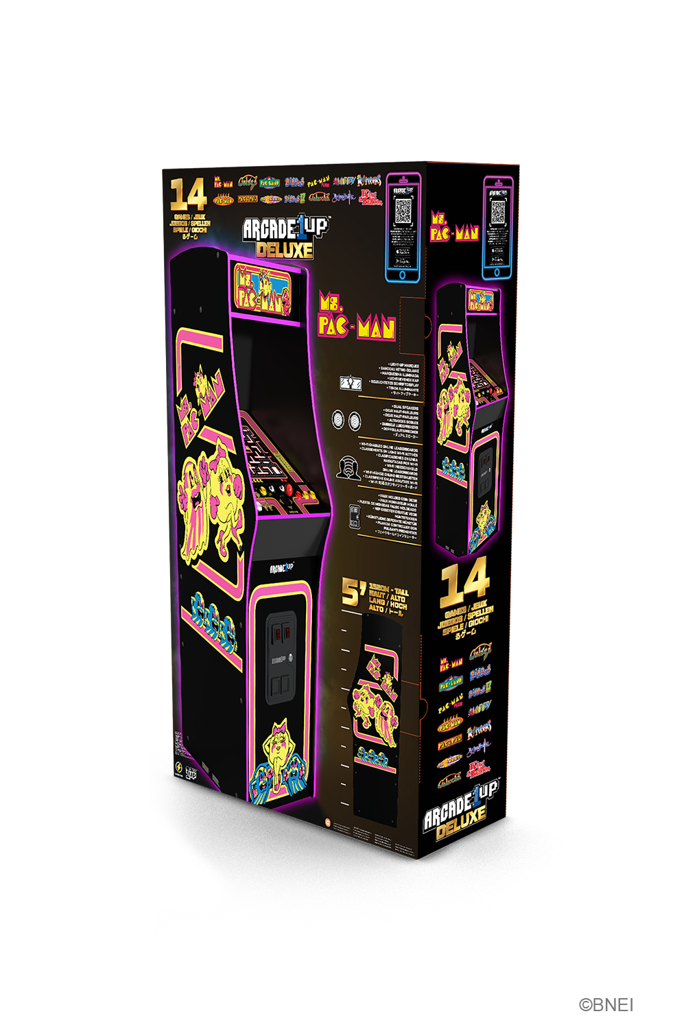 Get ready for the ultimate arcade gaming experience with the Ms. PAC-MAN Deluxe Arcade Machine. This sleek black arcade Machine is a true showstopper, featuring enhanced features that set it apart from the rest.