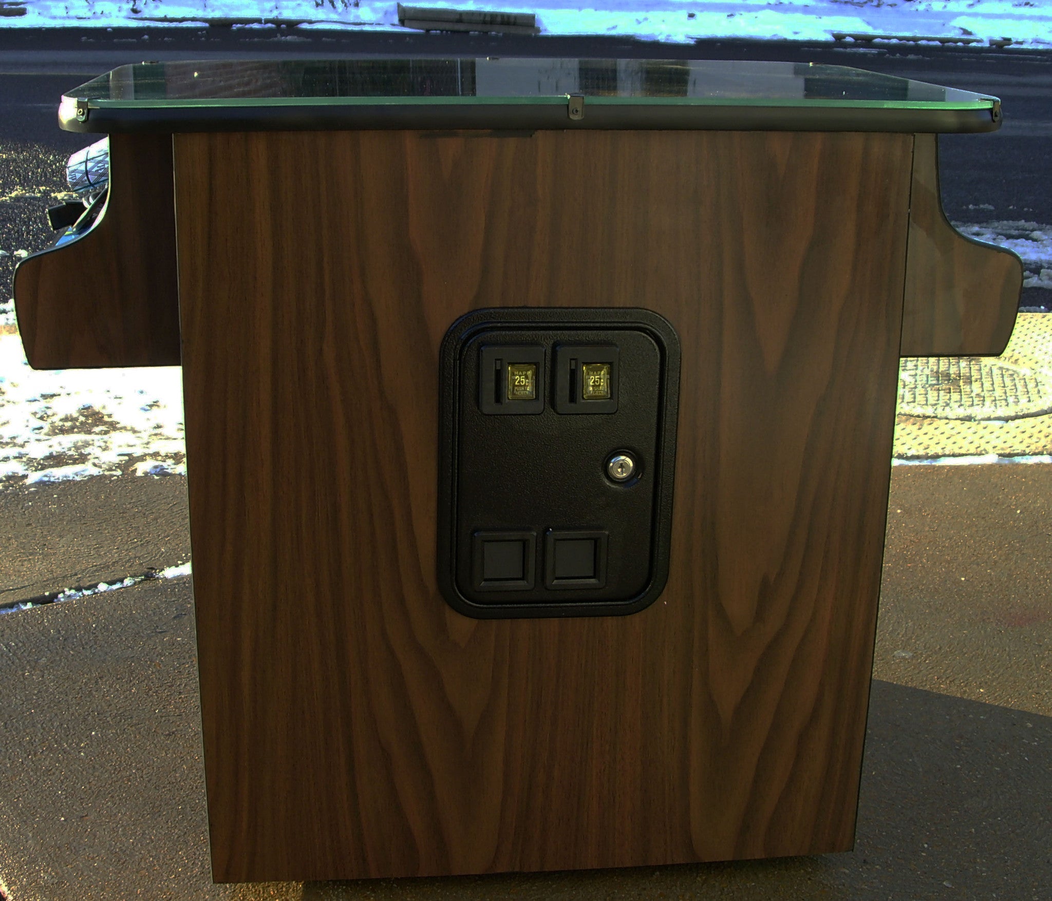THIS GAME IS A STANDARD SIZE, WHICH IS 32″ TALL BY 33″ WIDE BY 21″ DEEP AND IT WEIGHS ABOUT 150 LBS. THIS GAME IS ALSO AVAILABLE IN CHERRY, DARK WALNUT, WHITE OR COLOR OF YOUR CHOICE. WE CAN ALSO ADD YOUR OWN FAVORITE LOGS OR DECALS TO THIS THIS GAME.