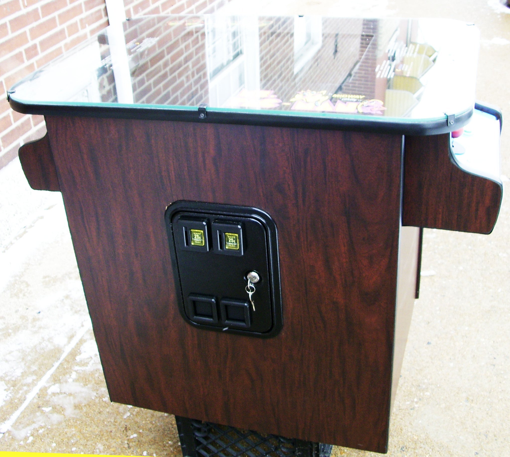 THIS GAME IS A STANDARD SIZE, WHICH IS 32″ TALL BY 33″ WIDE BY 21″ DEEP AND IT WEIGHS ABOUT 150 LBS. THIS GAME IS ALSO AVAILABLE IN CHERRY, DARK WALNUT, WHITE OR COLOR OF YOUR CHOICE. WE CAN ALSO ADD YOUR OWN FAVORITE LOGS OR DECALS TO THIS THIS GAME.