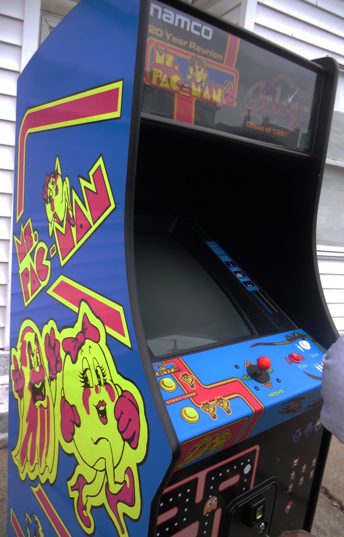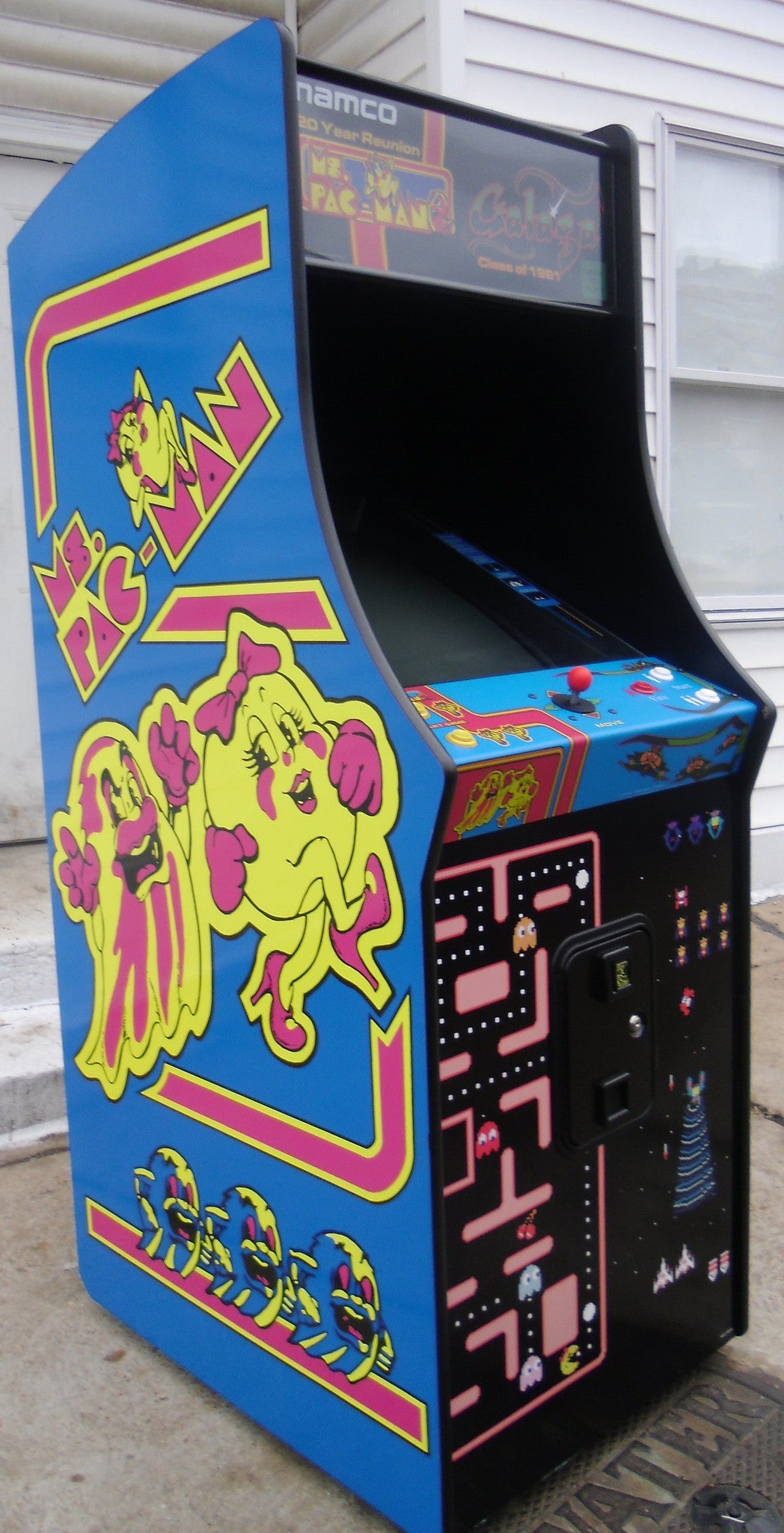 Home MS PACMAN-GALAGA 20 YEAR REUNION ARCADE VIDEO GAME-LOTS OF NEW PARTS-SHARP-HEAVY DUTY, COIN OPERATED, COMMERCIAL GRADE WITH FREE PLAY OPTION-