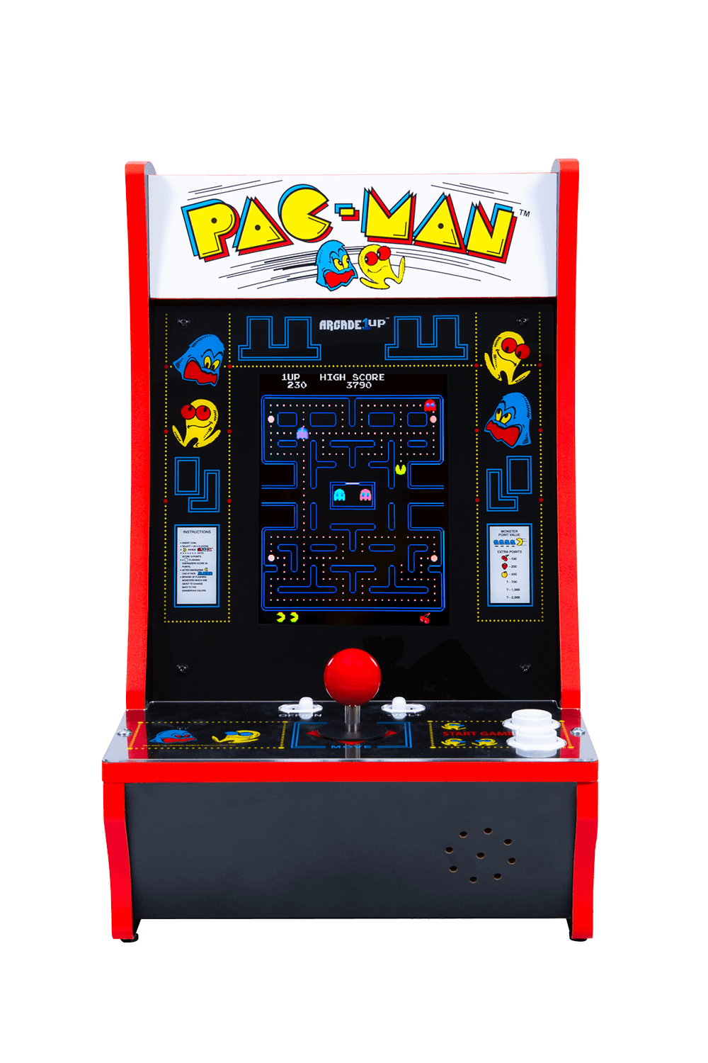 Pac-Man is back, man! Outrun the ghosts and collect Pac-Dots while navigating Pac-Man through the maze. Complete each stage by collecting all of the dots and avoiding the tricky ghosts. Experience this gameplay as you would have in an arcade with Arcade1Up’s Counter-cade featuring original gameplay with full size controls.