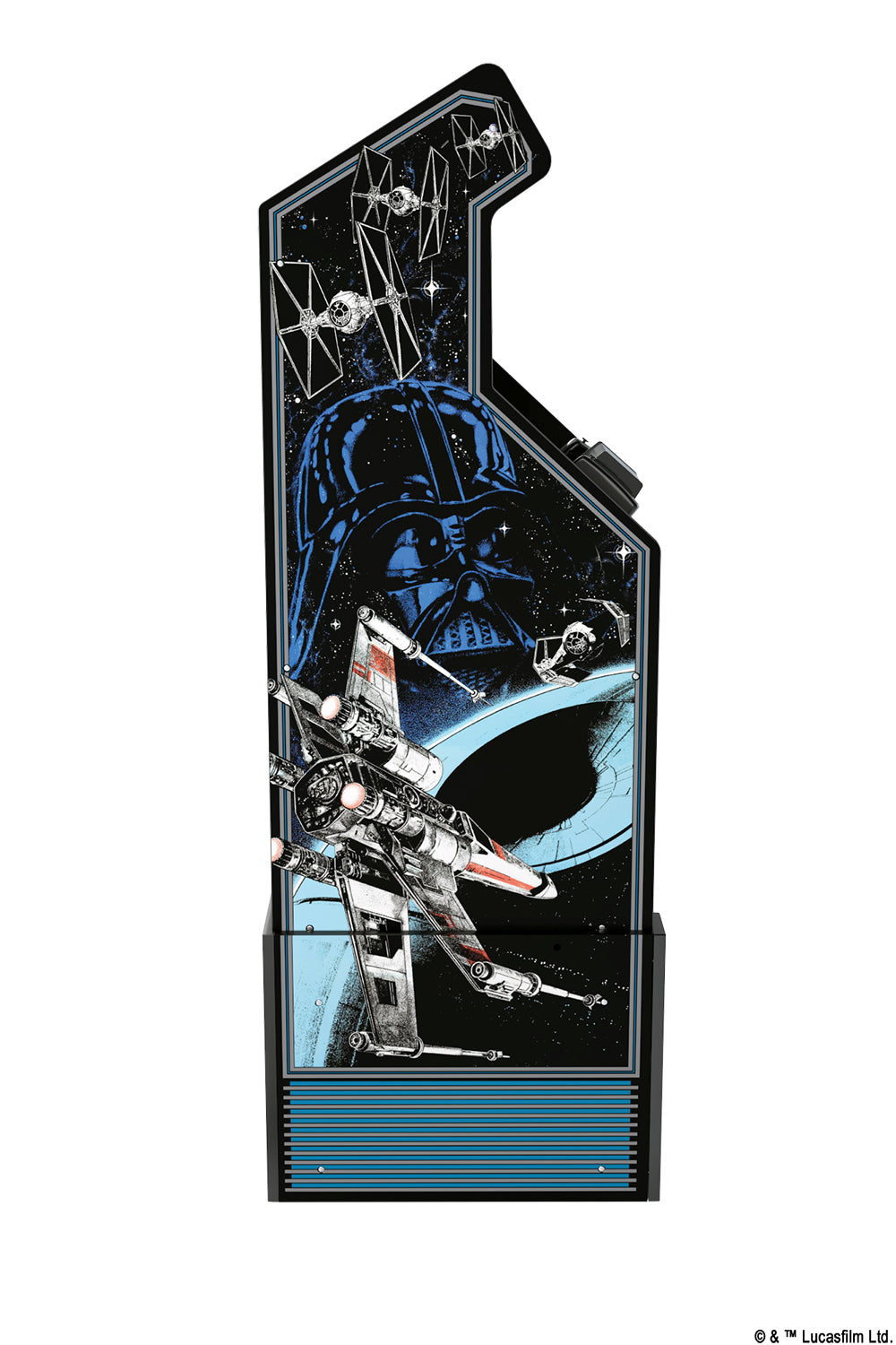 Back by popular demand! The special 40th anniversary edition of The Star Wars™ Home Arcade Game features artwork from the original arcade machine that flows seamlessly from the cabinet to the included riser. The just over 5’ tall machine (with riser) comes with a lit molded coin door, light up marquee, full-color 17” display and dual speakers. These features, combined with the real-feel flight yoke and control buttons allow for endless hours of gaming! The Star Wars™ Home Arcade Game is easy to assemble. (Force Powers not required)
