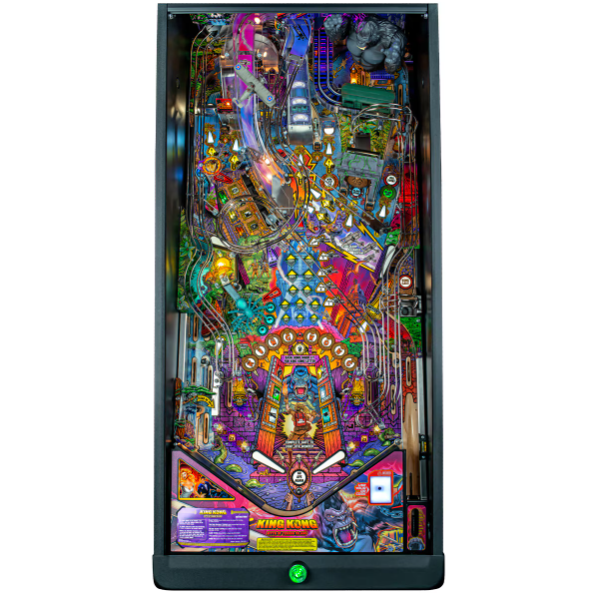 This Premium Edition features the “King Kong on building” translite and a biplane attack side cabinet, showcasing hand-drawn artwork by renowned pinball artists Kevin O’Connor, Greg Freres, and Jeremy Packer.