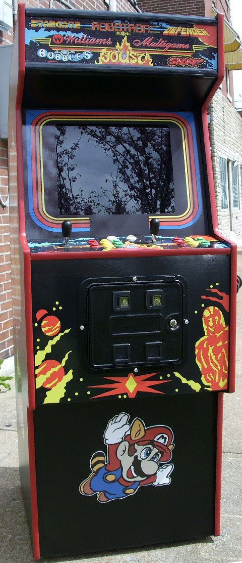 This Multi Arcade Game plays plays Defender, Stargate, Robotron, Joust, splat, Mario and Super Mario Brothers. It comes with LCD monitor. All new parts are installed in this game. Please call us at 314-481-4316 if you have any questions about this game.